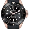 Az Edox 80120-37RNNCA-NIR Skydiver Neptunian egy stílusos és strapabíró férfi karóra a Skydiver Neptunian kollekcióból. Az óra 44mm-es rosegold tokja és a fekete szíj elegáns és modern megjelenést kölcsönöznek az órának. A fekete számlap fekete kerettel kombinálva egyedi és kifinomult karaktert kölcsönöz a karórának.